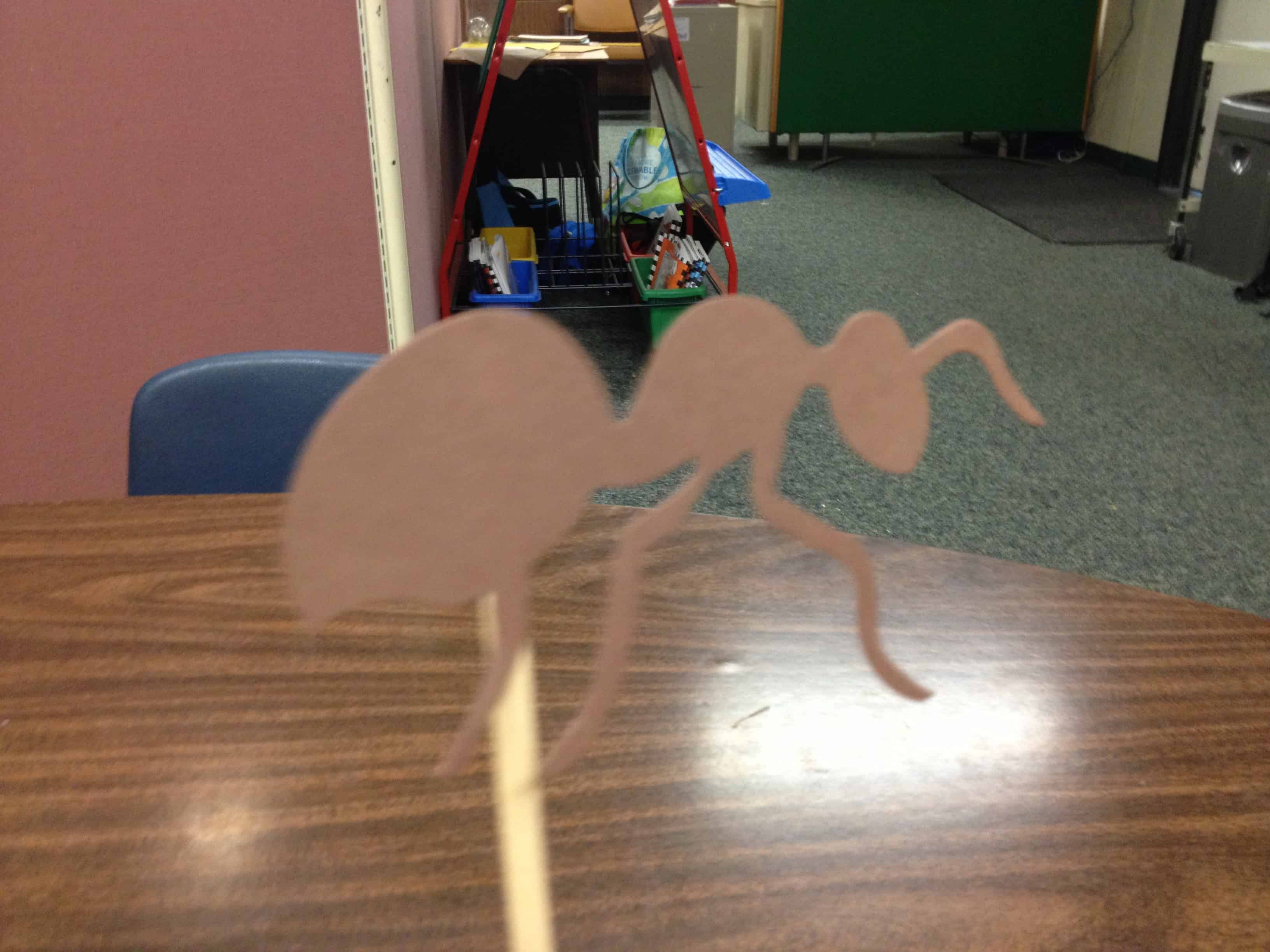 After we made our snack, I decided to bring in a classic kid favorite of mine, “The Ants Go Marching” because I have several little ones that love music. I made these cute little ant puppets with the die cuts at my school.