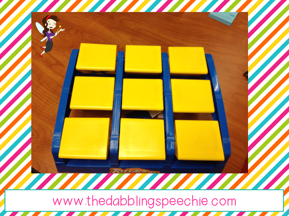 I love writing numbers on post it notes and placing them on the X’s and O’s. When a person hits an X or O that has a number on it, that is how many times they have to say their speech sound. Or it could be how many questions they have to answer or how many attributes they have to describe about an item.