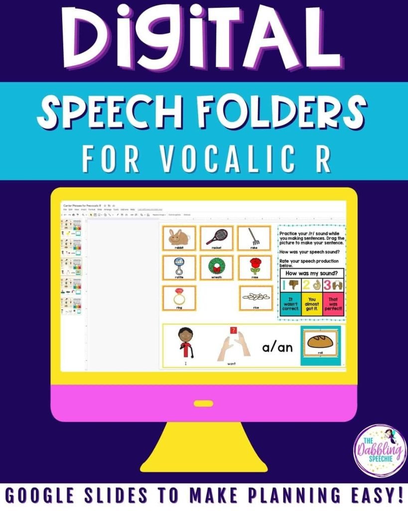 3. Whether you are doing teletherapy, in-person therapy, or need to build a speech home program, using the digital speech folders for R will help you customize syllable, word, sentence, and carryover activities in one spot! Once your student’s digital speech folder is set up, you can easily share the Google Slide presentation with the family or pull it up on your computer for ready-to-go therapy.