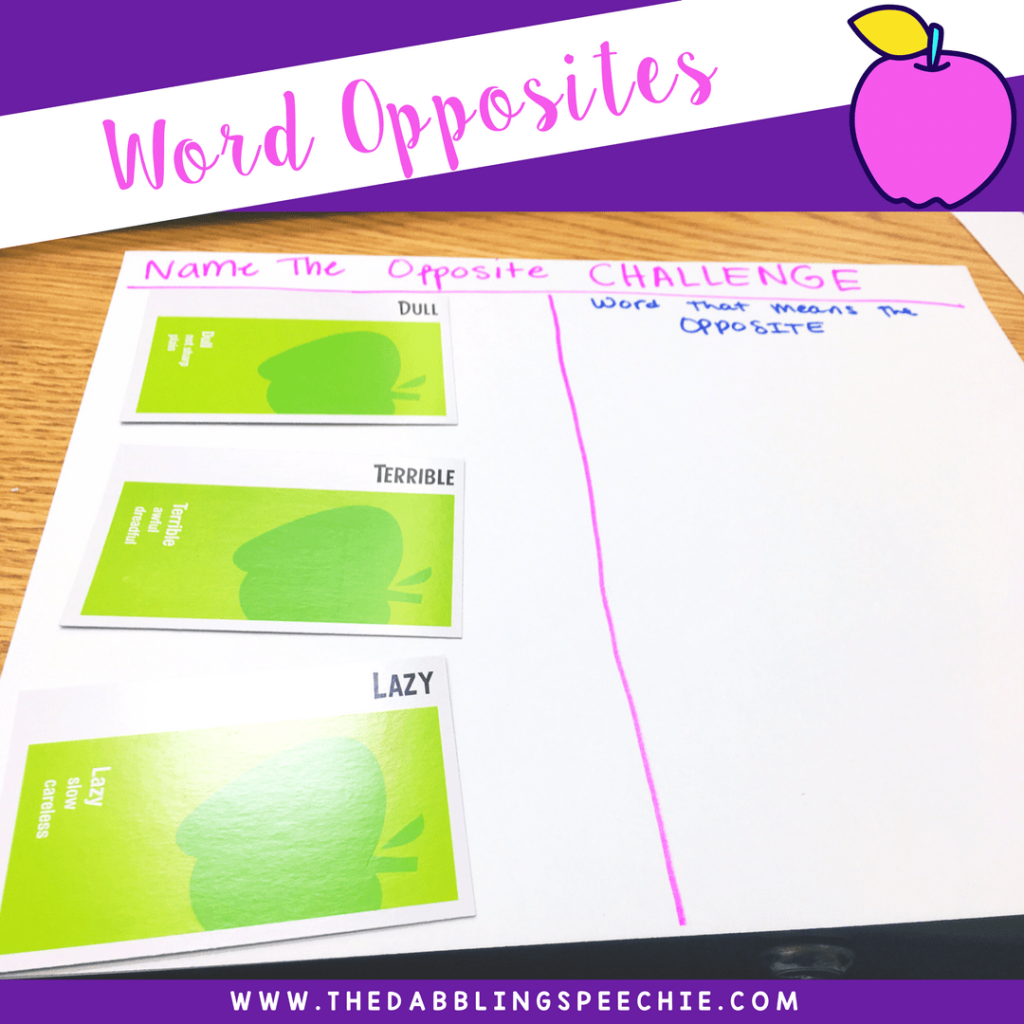 I love calling everything a “challenge”. Sounds way more FUN than telling the students we are doing an activity. The students have to come up with a word opposite for the apples to apples game cards.