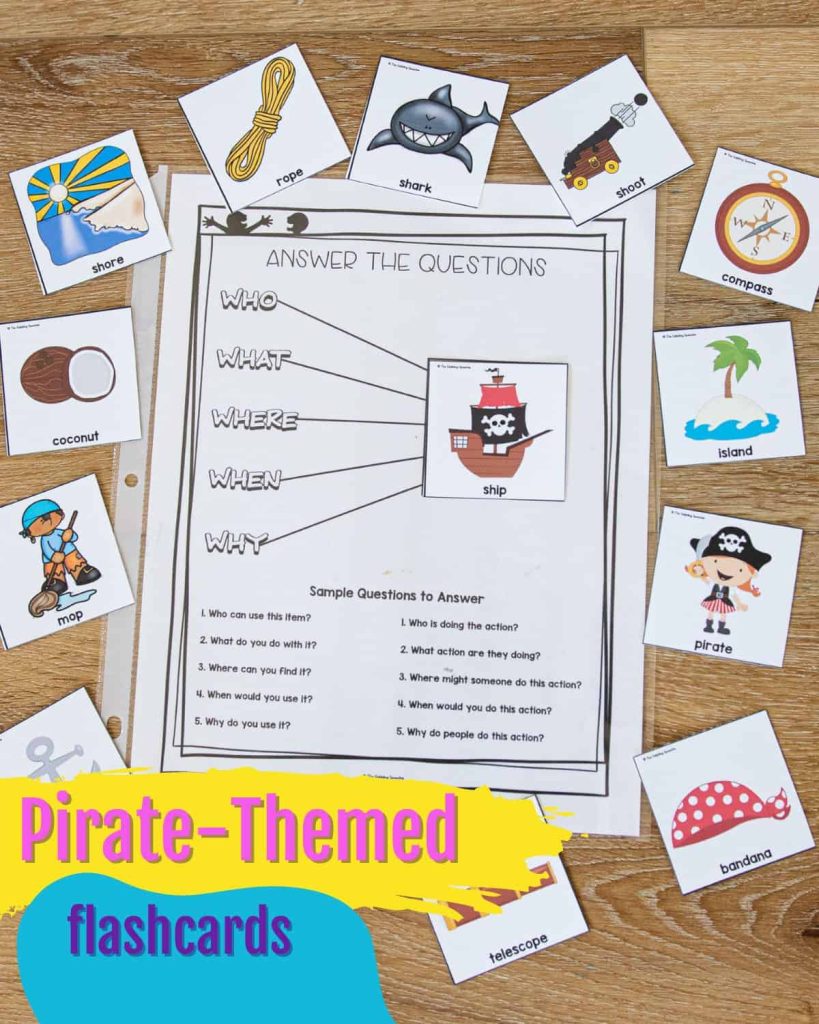 Using a pirate-themed book can help you have an engaging lesson that increases engagement with vocabulary and concepts from the theme. If you need pirate books for speech therapy with repetitive text check out these options: