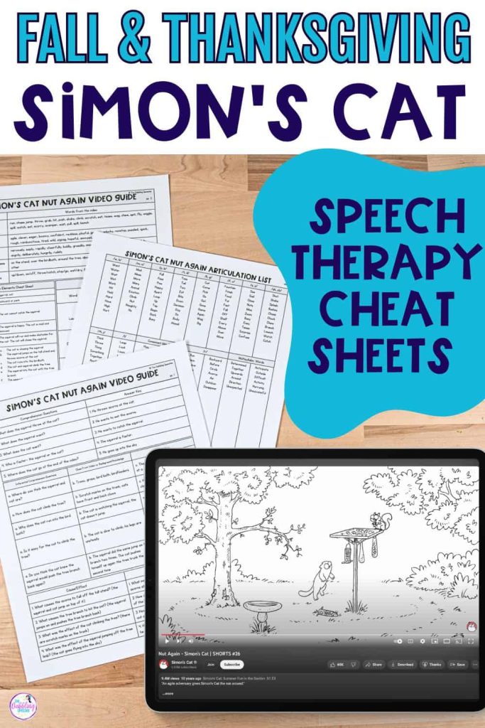 It’s super easy to adapt for mixed groups using my fall and Thanksgiving Simon’s Cat speech therapy cheat sheets. They have articulation, vocabulary, story elements, inference questions, cause and effect and more!