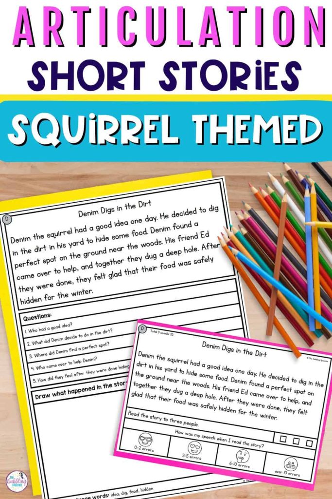 In my TPT store, I also have a squirrel articulation short stories resource that is sound-loaded with homework sheets (this is also in the Themed Therapy SLP membership.)