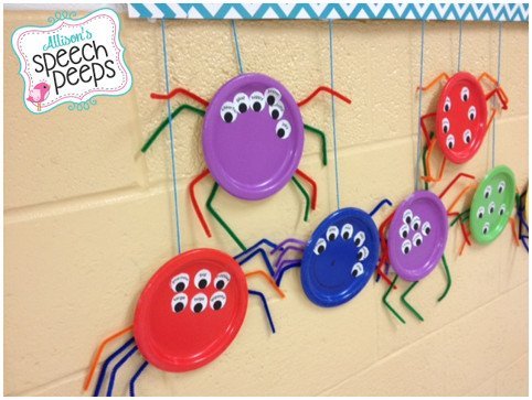 I love this synonym spider craft from Nicole Allison! It is functional and great for speech room decor and vocabulary. You just need pipe cleaners, paper plates, and Nicole’s free printables.