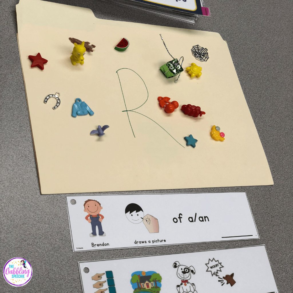 If you are needing visual support to work on speech sounds at the carrier phrase level, check out these visual sentence strips. They have pre-made sound-loaded carrier phrases so you can create silly sentences with mini trinkets. There is also a No Print version included with these sentence strips.