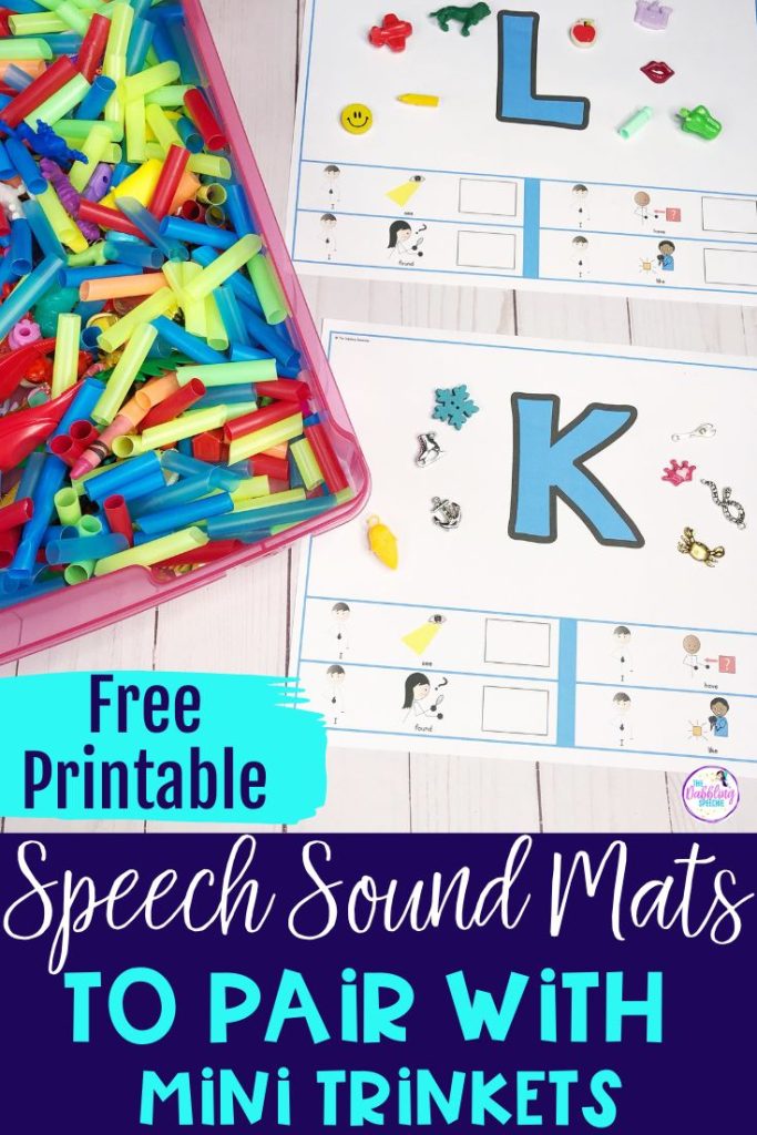 While you are working with other students in the group, have your students look for trinkets with their sounds. Then, they can practice using the trinket in a carrier phrase. Need these articulation mats? Click the pink button below for your FREE set.
