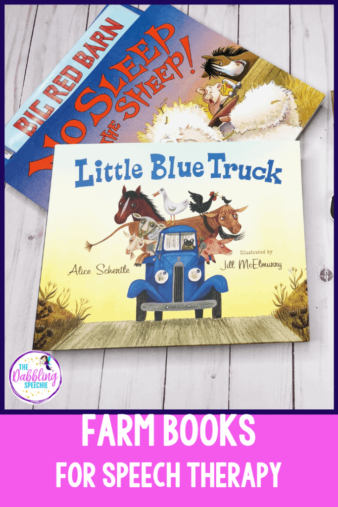 I love bringing literacy into my sessions. The books have such colorful pictures, so I often use those to help stimulate language. Of course, you can work on story retell and oral narration with farm books, but you can also target grammar concepts, vocabulary, perspective taking (social skills), and articulation/phonology with words from the story.