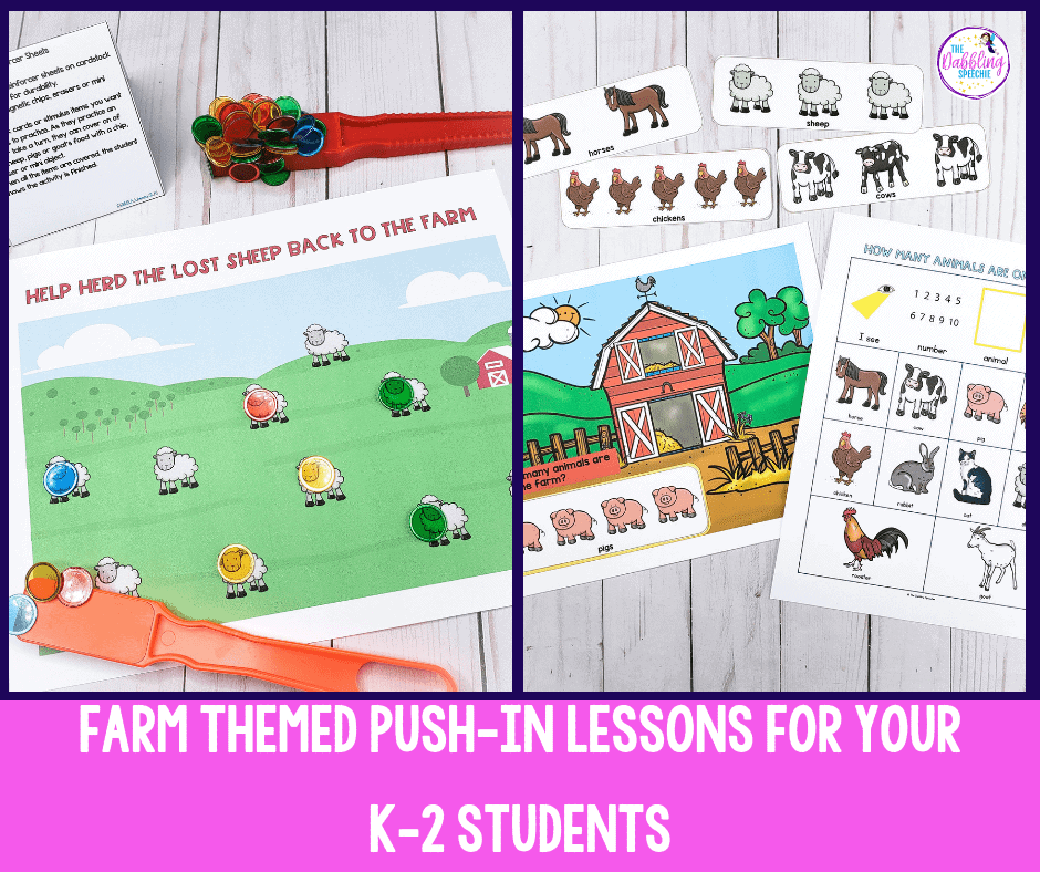 Wanting to bring farm-themed speech therapy activities into your whole class lessons? Check out my Farm Push-In Activities. They are perfect for busy SLPs wanting to use language activities in small groups and push-in lessons for their K-2 students.