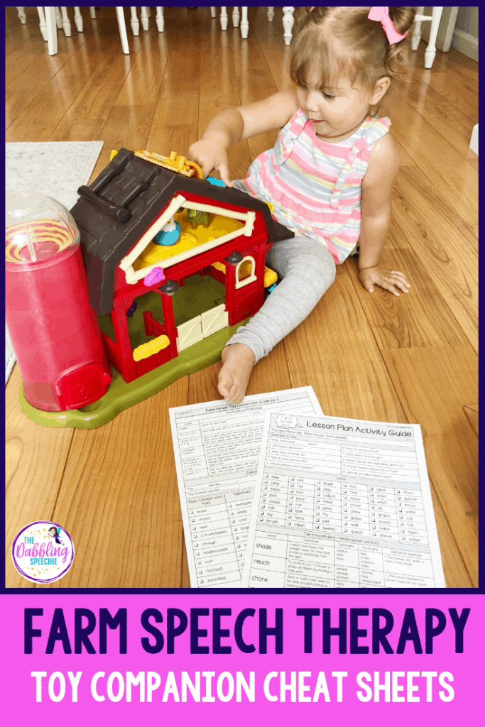 Do you need a cheat sheet that would help you remember all the target verbs, questions, vocabulary and activities to do with a farm house? Grab my Toy Companion Speech & Language Cheat Sheets and always feel prepared doing play-based therapy.
