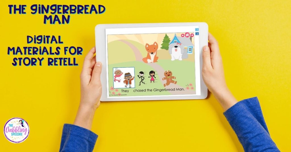 Some of your students may need step-by-step visual supports with what happened in the story. For SLPs doing teletherapy or using their iPad, using the Boom Card version for The Gingerbread Man story retell can be an easy Gingerbread Man lesson plan.