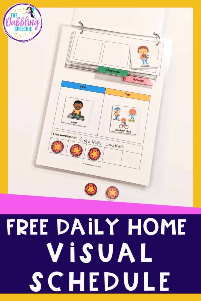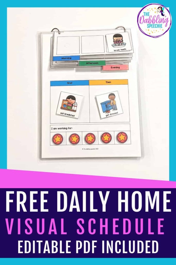 Many of our students with Autism need visual supports to help navigate their day. When we create routines and visually show them what is happening next, it creates a calm for our students. One thing SLPs can do to help support parents at home is to create these daily home visual schedules to send home with students. Scroll down to the pink button to grab this free daily home schedule.  (Amazon affiliate links are included for your convenience in this blog post.) I receive a small compensation for any purchases through those links.)