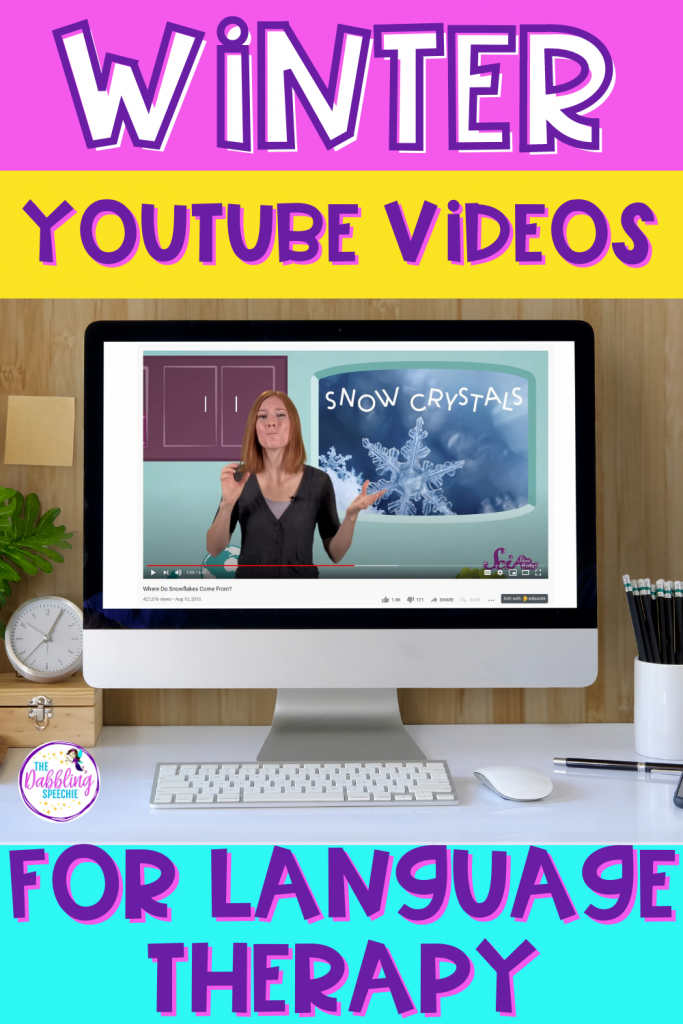 You can work on main idea and details about winter using this video from Scishowkids. The videos aren’t too long in length, so you can use them in a 20-30 minute session. Plus, you can also work tier II vocabulary with this video. With this video, it has 5 different winter videos that you can break up across the entire month to work on language.