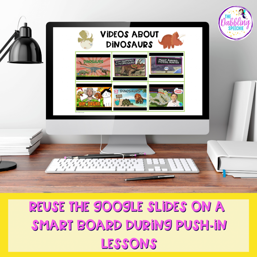 If you are looking for digital dinosaur activities that you can use for virtual push-in sessions and small groups, I suggest using Google Slides.