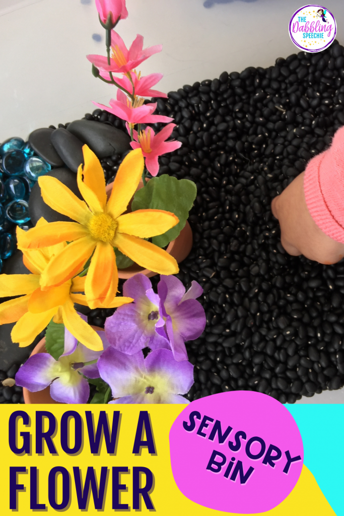 For SLPs that LOVE sensory bins and enjoy doing a flower theme, you can use this flower sensory bin companion to cover all your goals during play therapy.