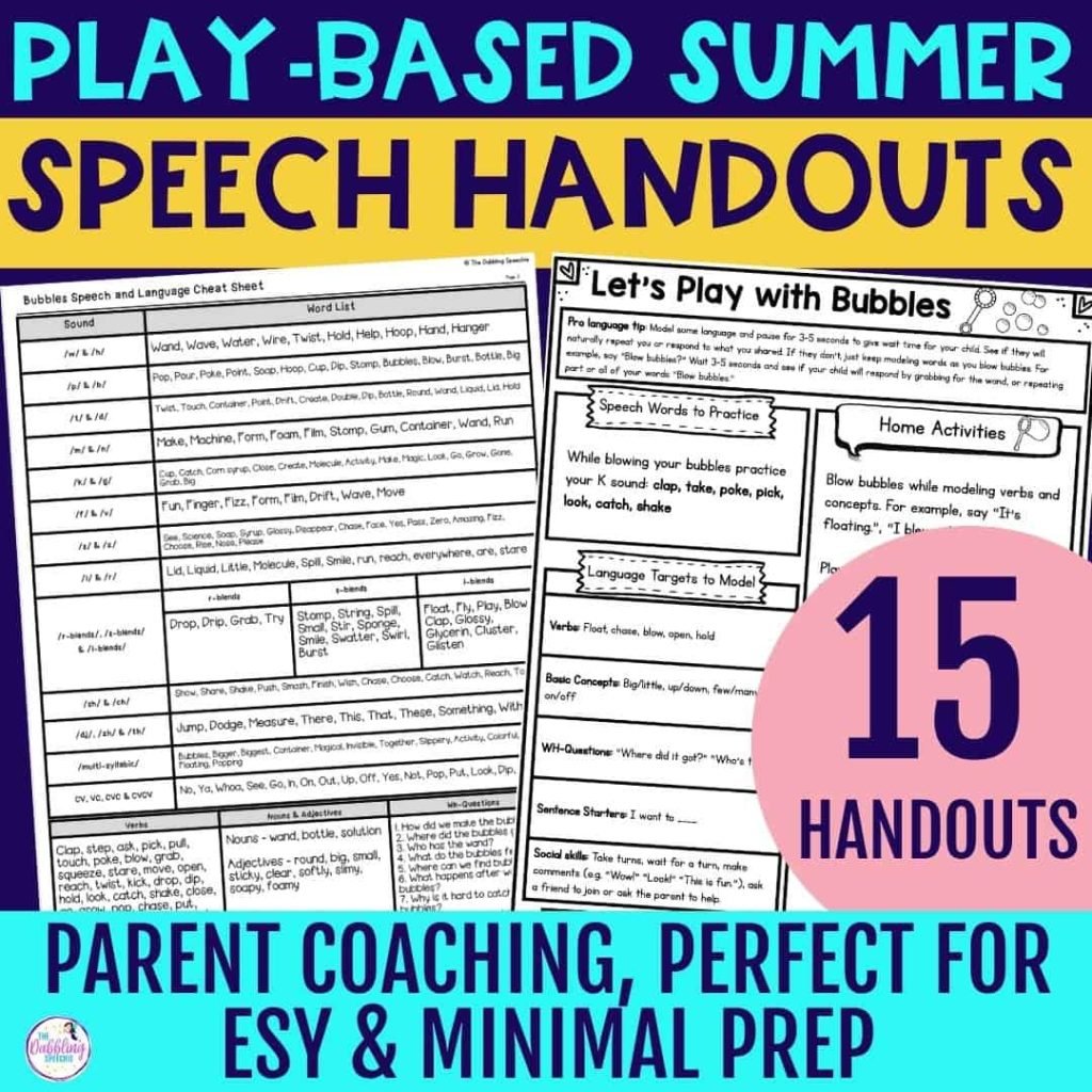 If you’re looking for easy ways to support carryover at home, these Summer Play-Based Speech Therapy Parent Handouts are a must-have! This low-prep resource includes homework packets filled with fun, functional ideas that families can do using common toys and materials they already have at home.