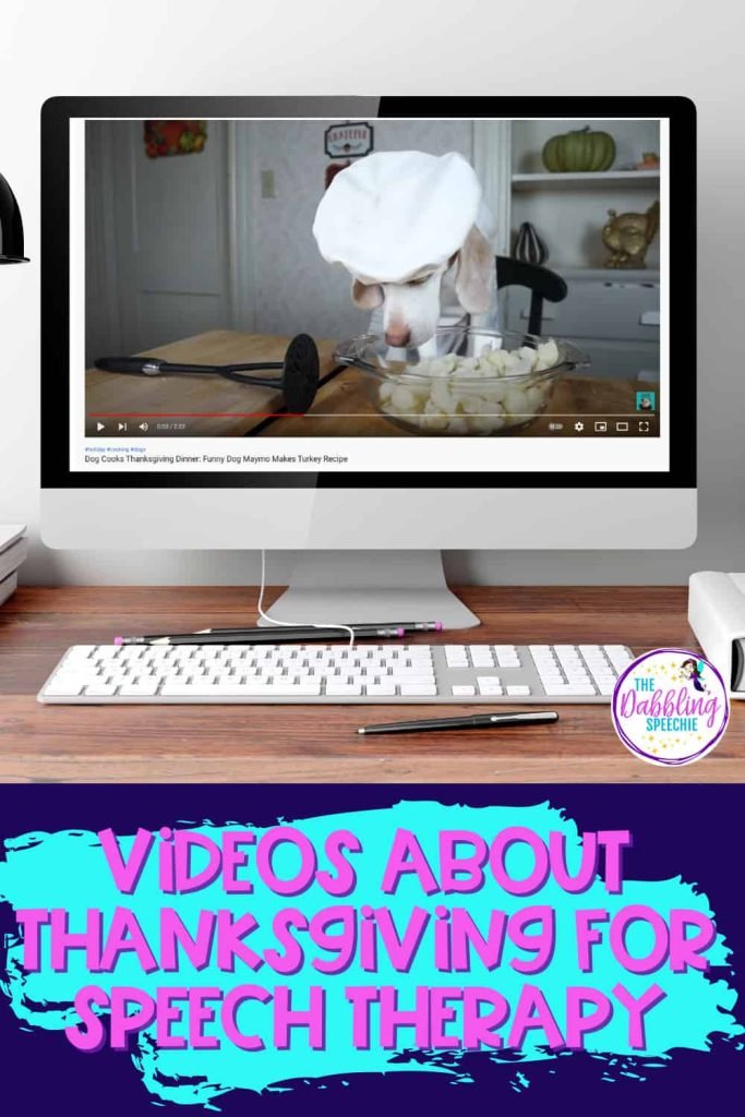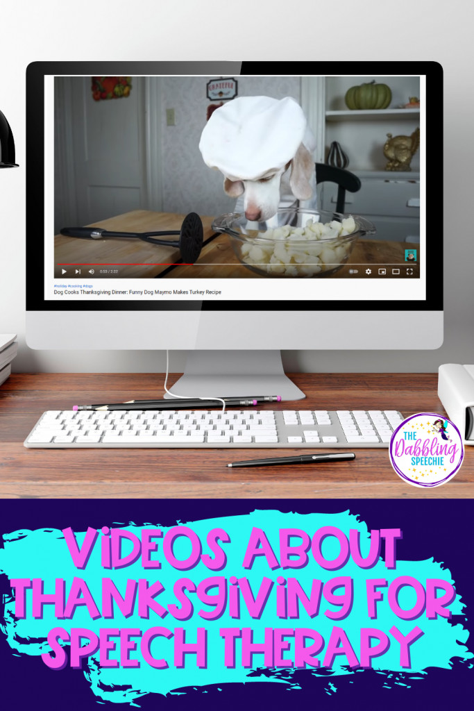For those of you SLPs that have dog-loving students on your caseload, this video will definitely perk their interest! In this video, the dog cooks Thanksgiving dinner. Here are some skills you can target with this video: