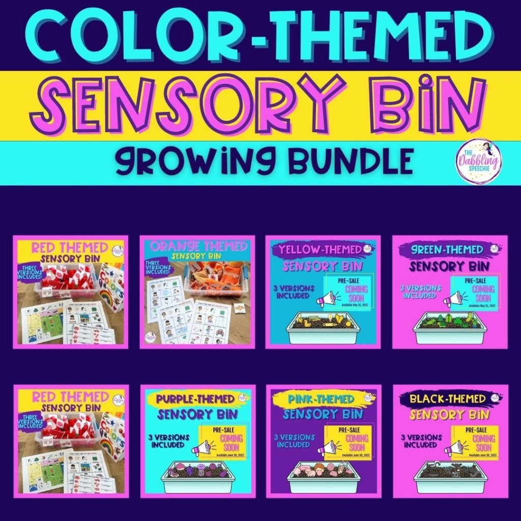 Suppose you are interested in getting themed sensory bin materials. In that case, you can check out companions in my TPT store or have themed sensory bin guides with the Themed Therapy SLP Membership.