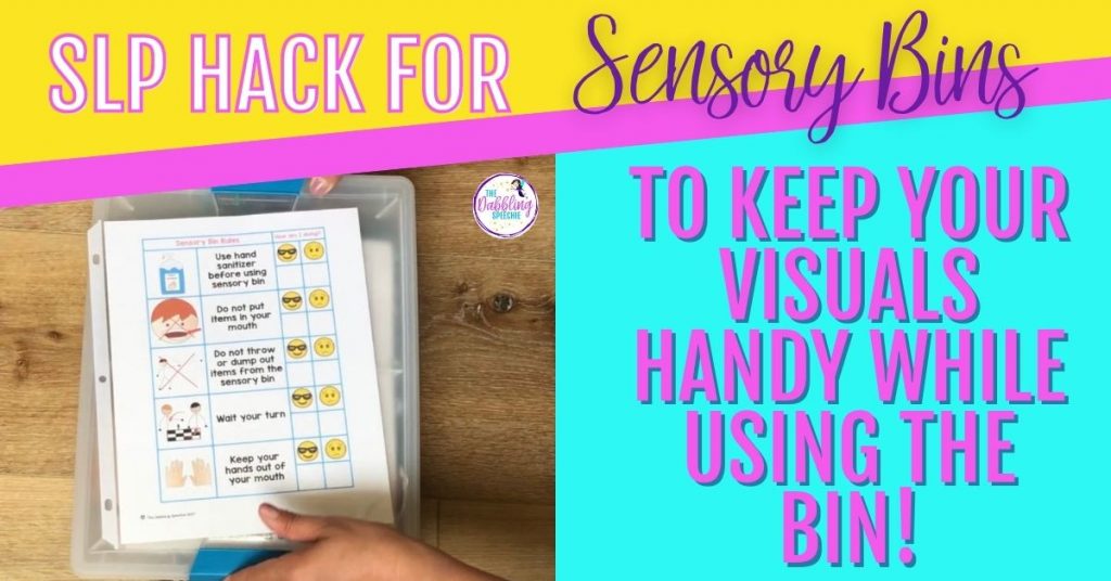 Do you have an SLP hack for keeping your sensory bin materials together? Or, just tips for keeping students engaged while using a sensory bin? Let me know your hack or information in the comments!