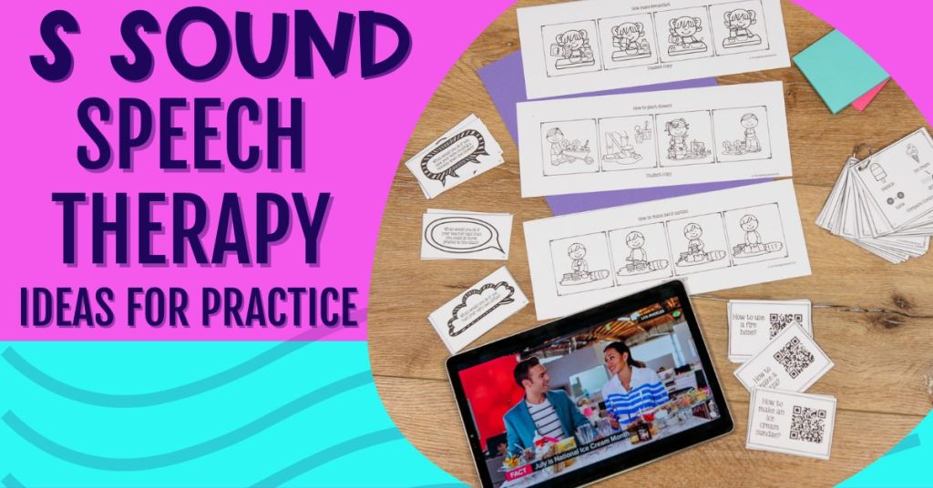 At last, it’s time to work on the /s/ sound in conversation. The /s/ sound occurs so frequently in our language so ideas for this level are endless! Here are some more ideas for speech therapy s sound.