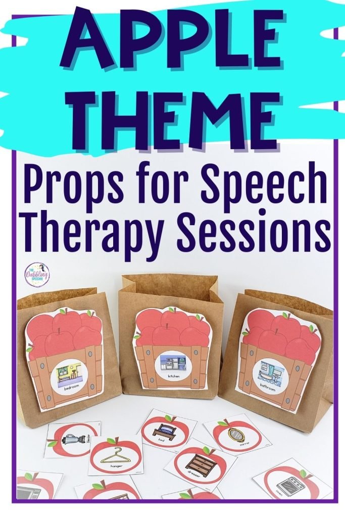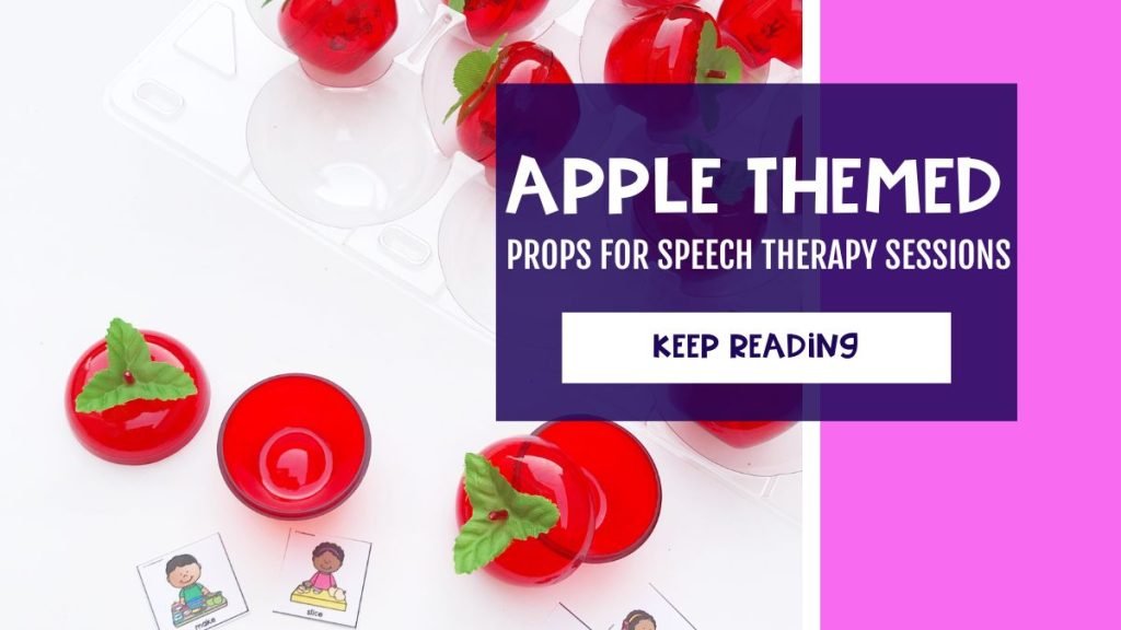 You can do an apple speech therapy theme any time of the year, but it’s enjoyable to do it during the fall months when apples are harvested. If you love an apple theme and want some ideas for toys and props to use in your play-based speech therapy sessions, this is the post for you! I have rounded up all my favorite apple-themed props that you can use to increase engagement while targeting speech and language goals.
