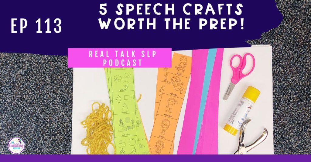 When it comes to lesson planning for your mixed speech and language groups, using crafts can be super effective! But, I know some of you may be thinking, “I don’t do speech therapy crafts because it’s too much prep and mess.” Now, I definitely agree with you that crafts can distract from sessions if they have too many tedious steps, or don’t ensure enough practice on speech and language goals. But, these five speech therapy crafts that I am going to share in this episode are worth the prep! Because they are easy to adapt, can be sent home as homework, used as a therapy tool and something student’s can pull out to practice in future sessions.