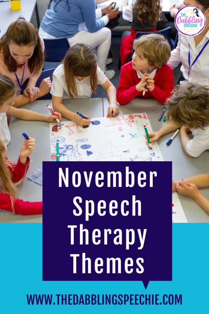 The fall season is still in full force in November. If you weren’t able to some of the fall speech therapy themes in October, this is the time to do them. Here are some themes