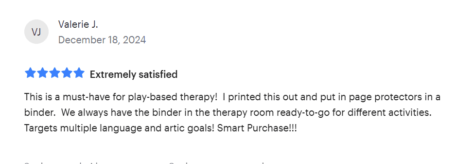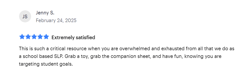 If you need more verbs and parts of speech to recast conversationally during play-based speech therapy, use my toy companion speech therapy cheat sheets to help you have language therapy targets ready for all your toys and games. They are available in my TPT store and on my website.