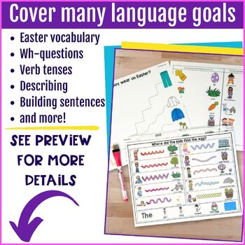 This Easter language resource was designed specifically for SLPs working with preschool, kindergarten, and early elementary students who need support with: