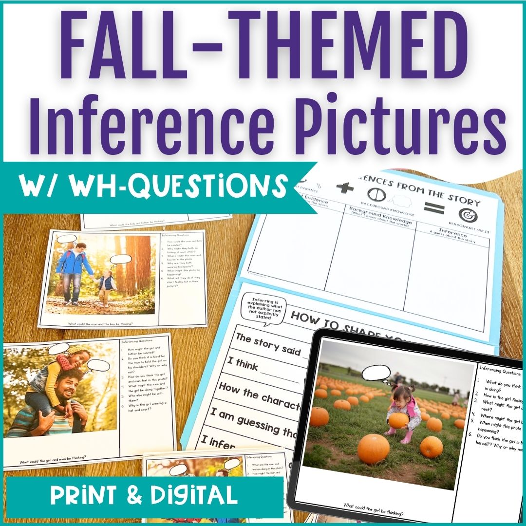 ❤️Answer inferential wh-questions about the photos. Research has shown that when students can answer inferential questions their reading comprehension improves (see source at the bottom of description)