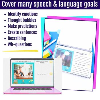 Although this flipbook focuses on inferencing with pictures, you can use this to target other language and articulation goals.