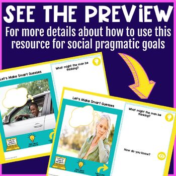 Using the making social inferences picture task card flipbook will help your students learn the following social pragmatic skills: