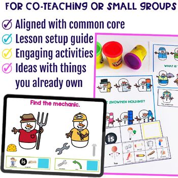 ⭐ WHAT’S INCLUDED IN THIS SNOWMAN SPEECH THERAPY PUSH-IN LANGUAGE LESSON: