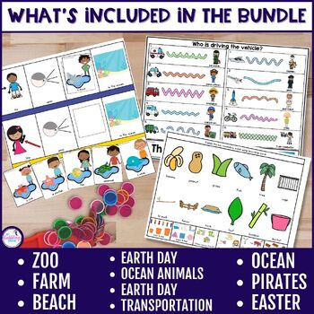 Please see each individual themed speech therapy set so you can see what is specifically included for those themed units.