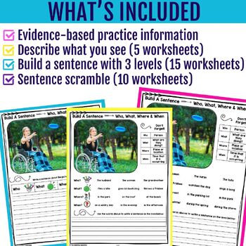 ✅ Breaking sentences down by WH-questions (who, what, where, when) helps students focus on building meaningful sentence content without becoming overwhelmed by grammar rules.