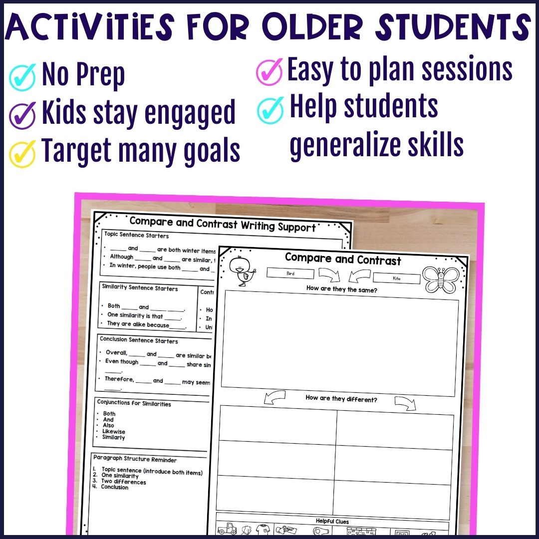 These activities are especially helpful for upper elementary and middle school students working on more advanced language skills.