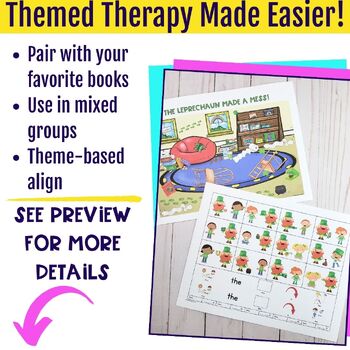 These printable St. Patrick’s Day speech therapy activities use a theme-based approach, incorporating St. Patrick’s Day vocabulary to target various receptive and expressive language skills. These St Patricks Day speech therapy activities are ideal for small group language sessions.