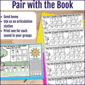 Too Many Carrots articulation worksheets are perfect to pair with the book in your articulation therapy sessions. It’s the perfect spring speech therapy worksheet set for practicing any speech sound at the word- or sentence-level. You can use the speech therapy homework sheets in the initial, medial, final, and mixed positions for the sounds p, b, t, d, k, g, f, v, s, z, sh, ch, j, l, th, and r for less stress with speech therapy planning.