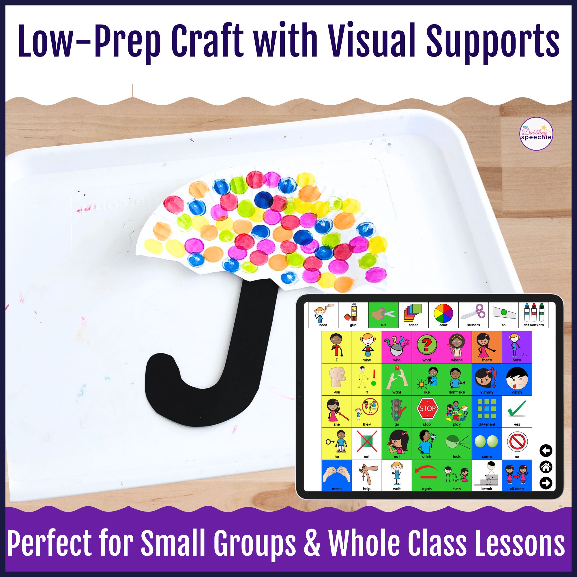 This low-prep weather craft works well for small groups, push-in services, whole-class lessons, and early elementary or preschool settings. Students create a rainy umbrella craft while practicing sequencing, describing, and answering WH-questions.