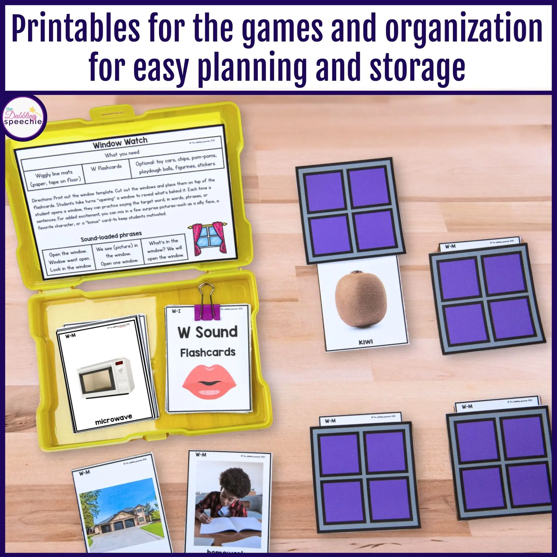 Make speech therapy for the /w/ sound engaging, effective, and fun with this W Articulation Flashcards and Games resource—designed for busy SLPs targeting initial and medial positions for the W sound. This versatile articulation toolkit includes 32 printable flashcards in color, black-and-white, and real-photo versions, plus 10 interactive articulation games and activities to support high-trial speech practice through play-based learning.