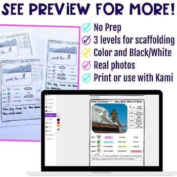 These grammar worksheets and task cards feature real photos to help students develop their expressive sentence formulation skills. Help reinforce the basics of sentence structure and expand their sentence formation capabilities!