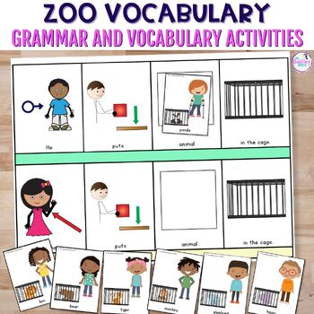 ❤️ Zoo verb pages with sentence strips (20 stimulus items)
