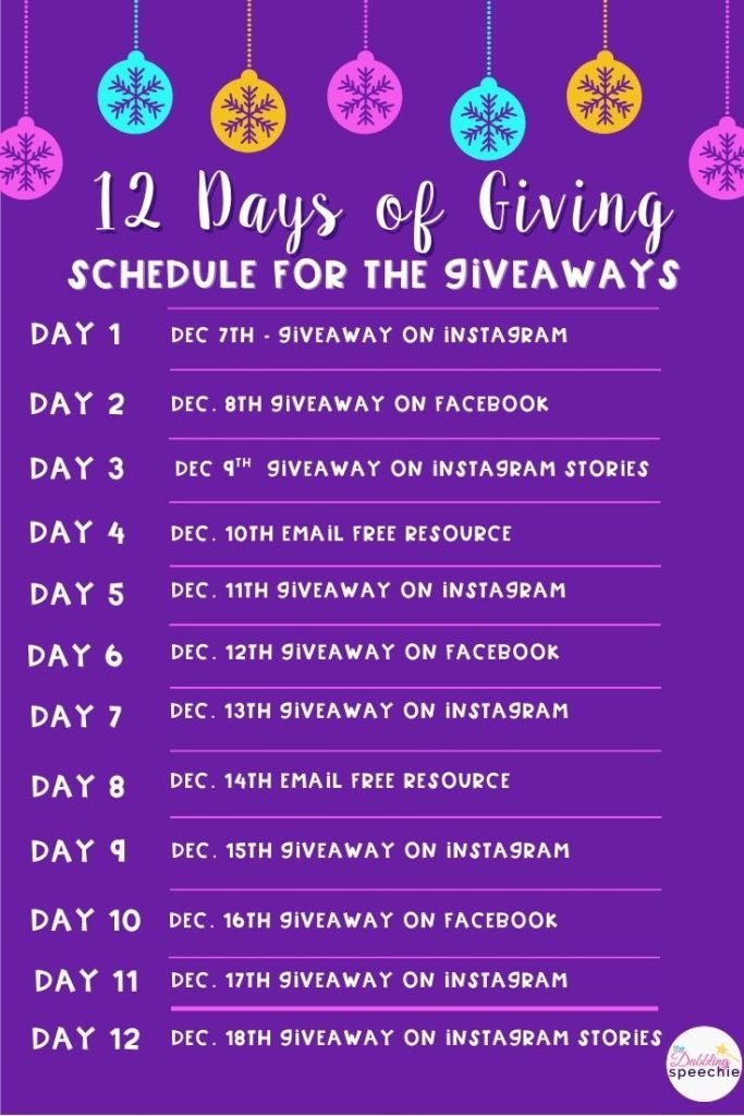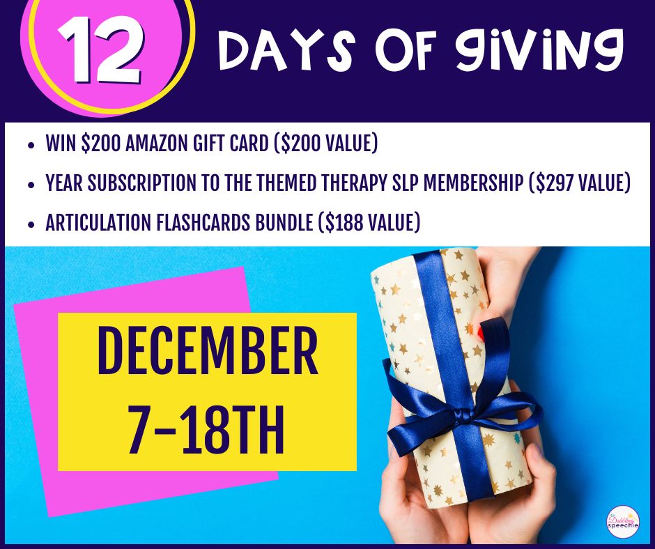 Celebrate the season with daily surprises + a HUGE grand prize for SLPs. From December 7th-18th you can win daily prizes. Everyone wins some free speech therapy goodies to help them get to winter break.